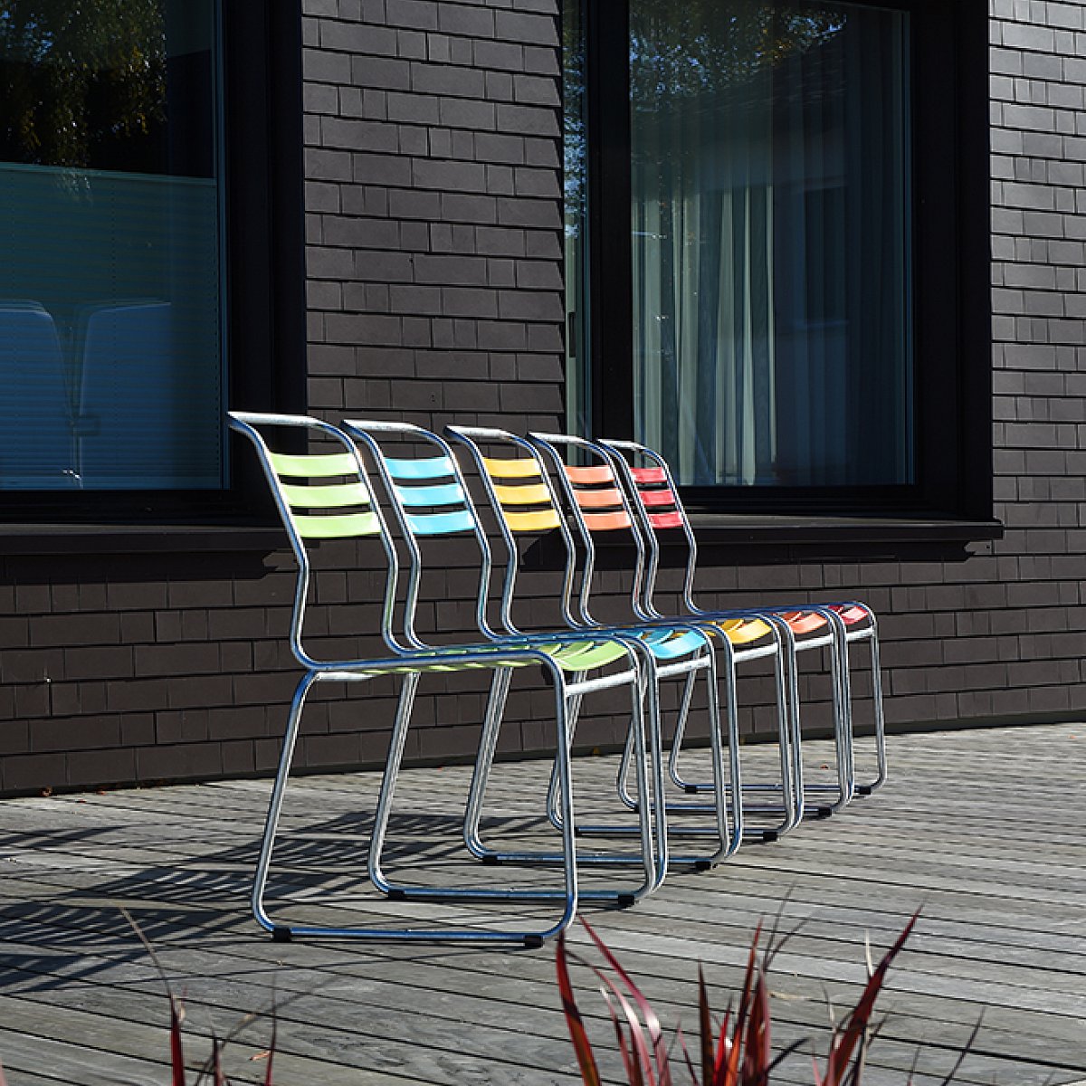 Säntis Lättli Kufen-Stuhl Kunststoff mit oder ohne Armlehne Gestell feuerverzinkt von Schaffner