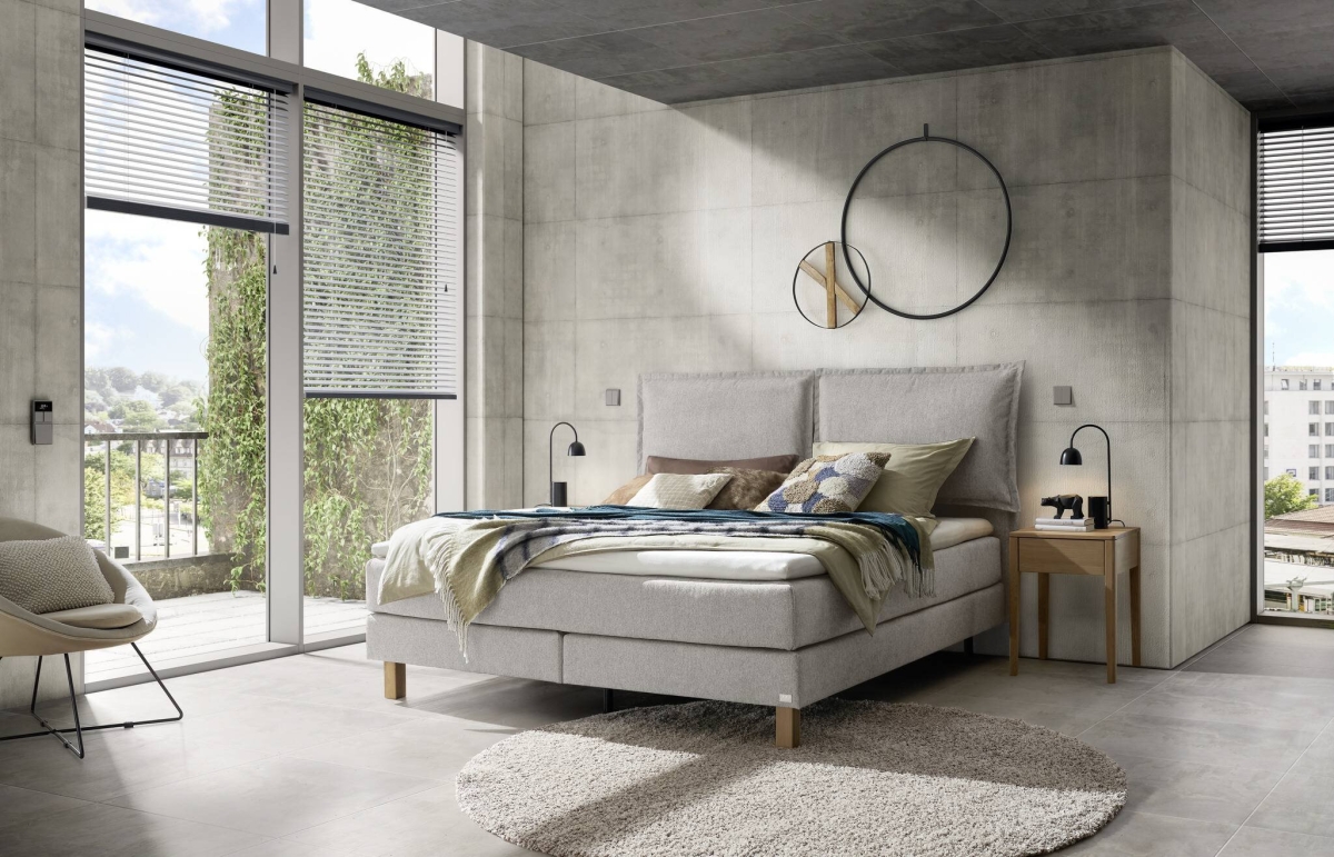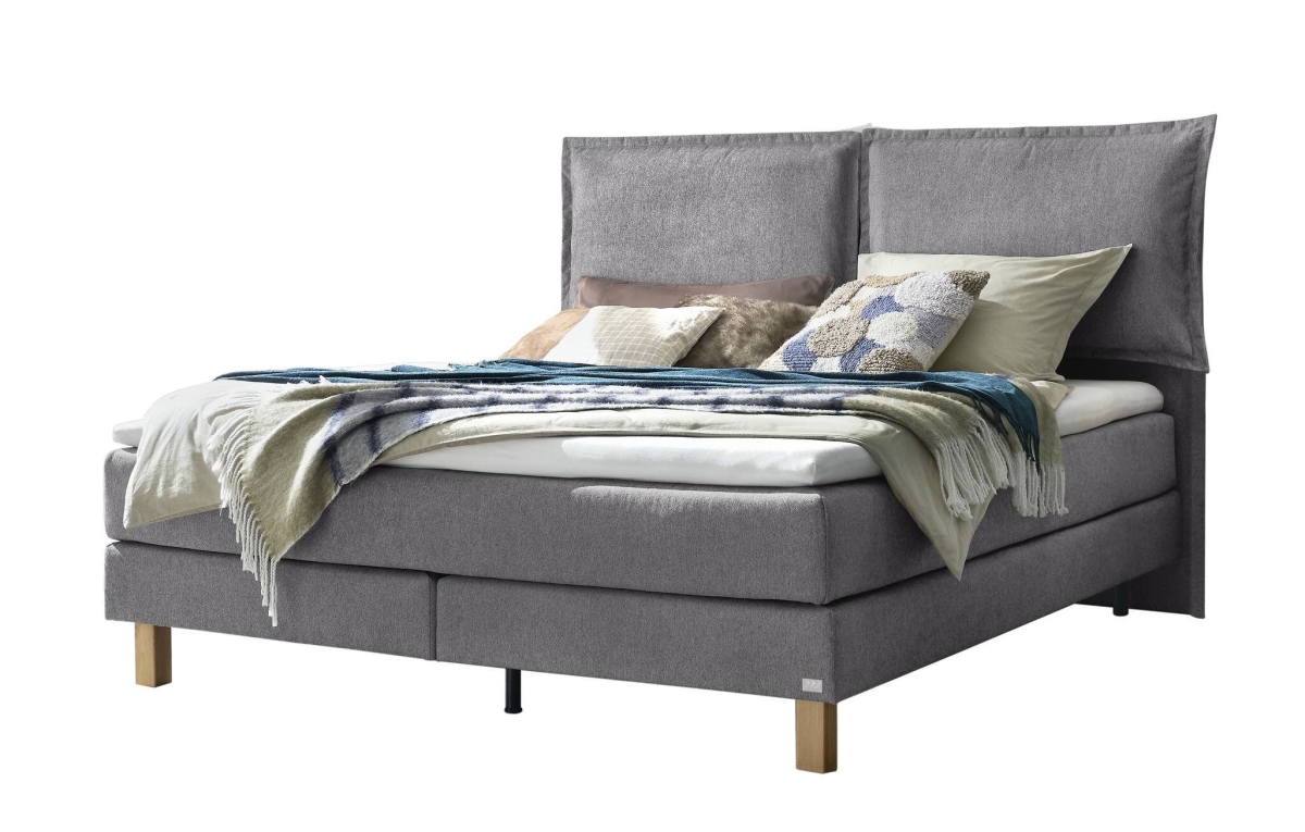 Das Hasena Pronto Boxspringbett  Bonita überzeugt mit seinem weichen Stoffbezug und eleganten Holzfüssen, die gemeinsam für eine moderne und wohnliche Atmosphäre sorgen.