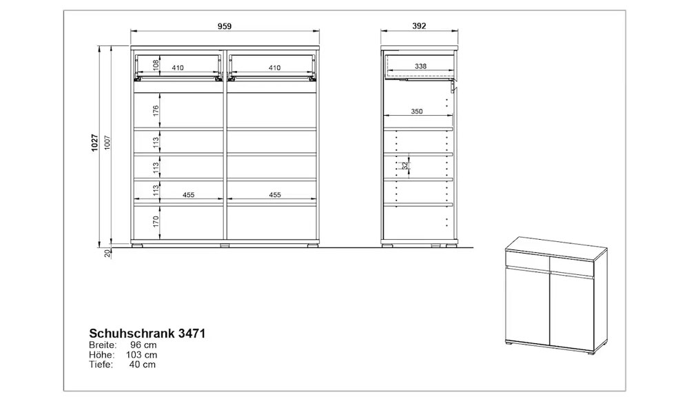2 Türen, 2 Schubladen, mit Dämpfung und Selbsteinzug